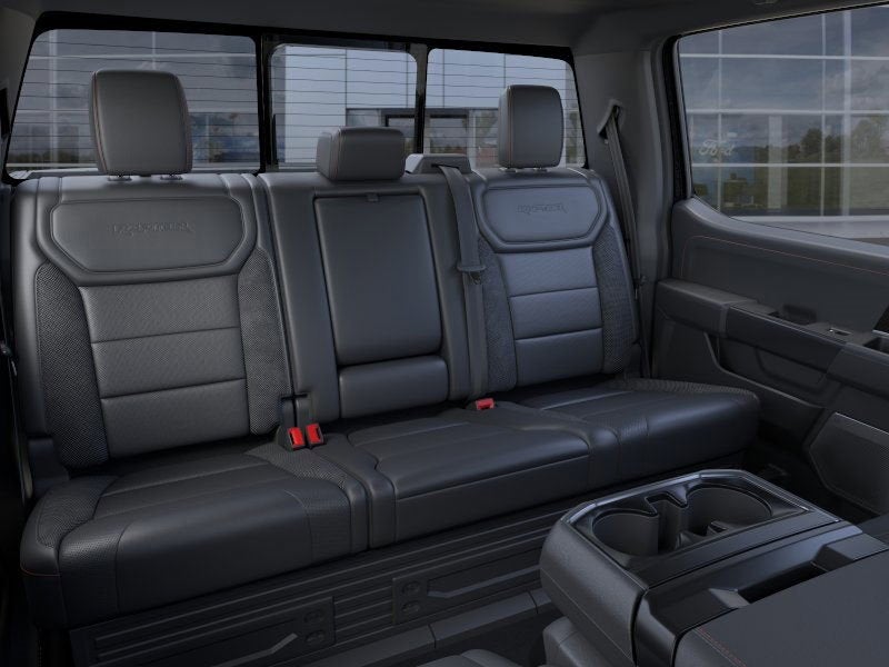 Heated and ventilated leather power front seats, a heated leather steering wheel, dual-zone automatic climate control, and power-adjustable pedals add a touch of comfortable class to our Raptor cabin. Commanding technology awaits with a SYNC-powered infotainment system bundling a 12-inch touchscreen, a 12-inch productivity screen, B&O Unleashed audio, connected navigation compatibility, Apple CarPlay, Android Auto, Bluetooth®, and WiFi compatibility.
