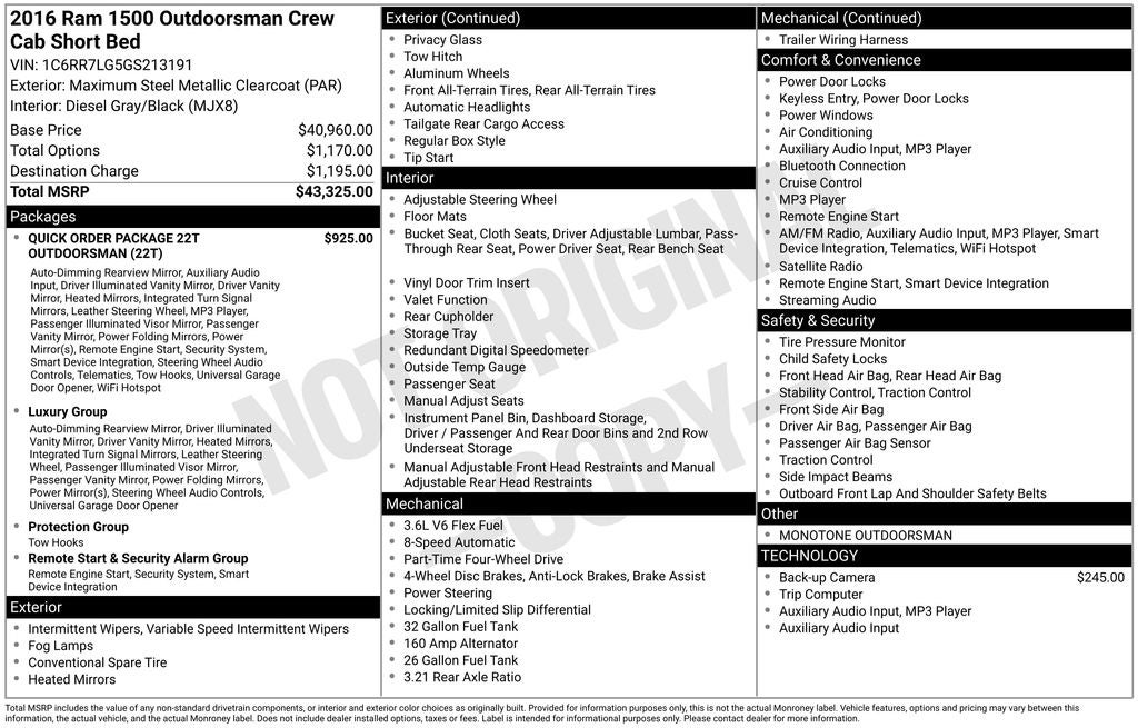 - Vehicle Name: Ram 1500