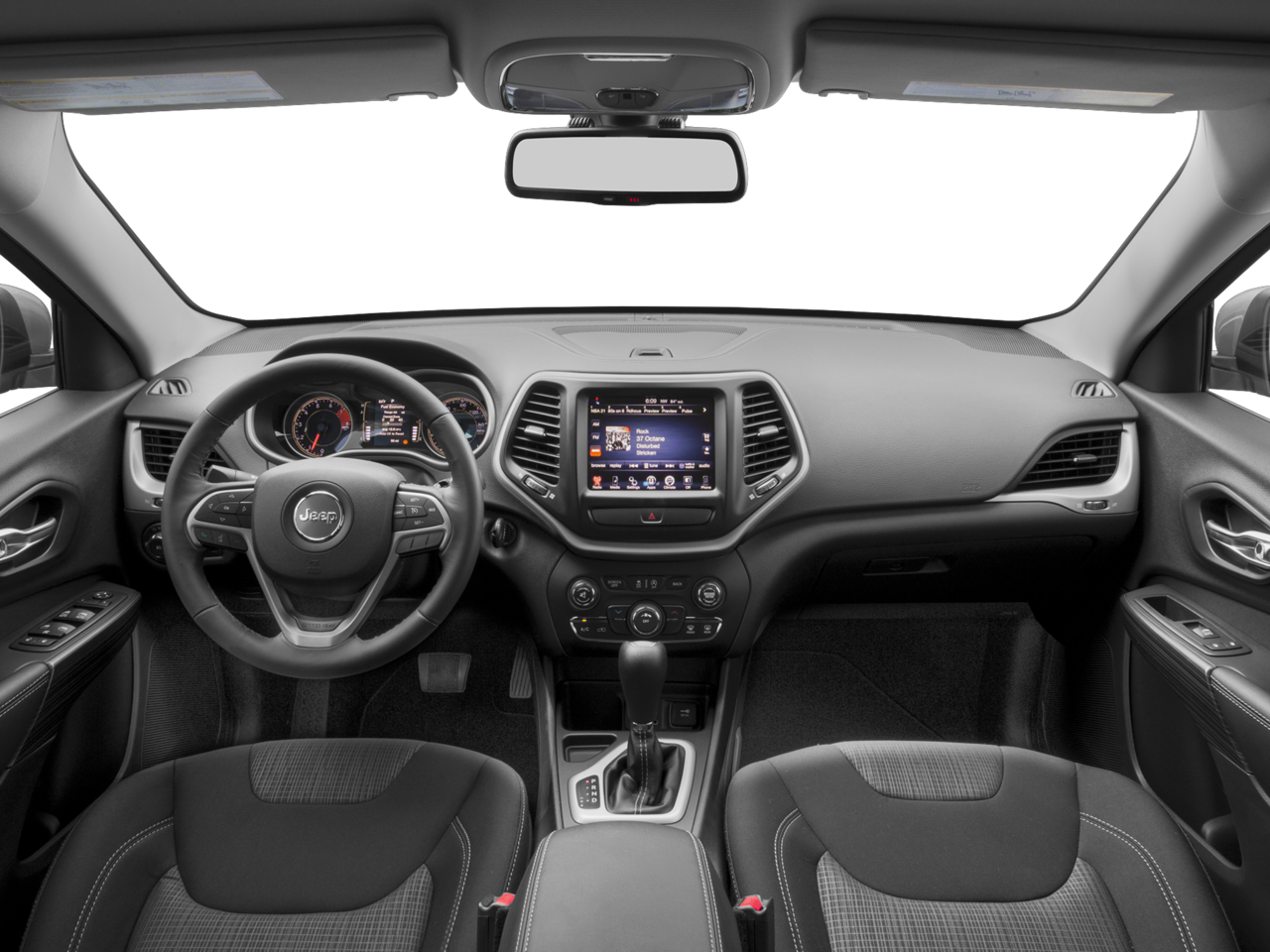 Inside, you'll see that Latitude's cabin layout is driver-friendly. A heated leather steering wheel with audio controls, heated cloth front seats, a fold-flat front passenger seat, and a convenient 60/40 split-folding and reclining rear seat come in handy. Enjoy Bluetooth® phone and audio connectivity, a touchscreen interface, USB/iPod integration, auxiliary audio input, and an SD card reader. Our Cherokee has all the creature comforts you'll need to keep that smile on your face.