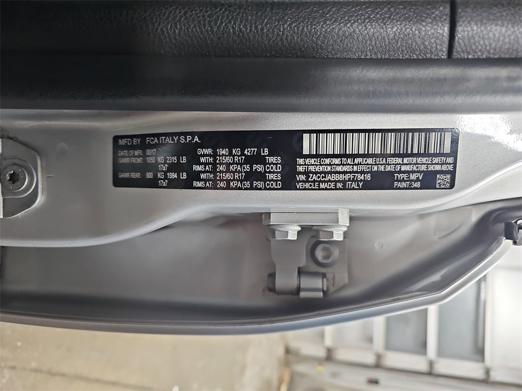 Step up to adventure with our Accident Free 2017 Jeep Renegade Latitude that's presented in Glacier Metallic! Powered by a 2.4 Liter 4 Cylinder that offers 180hp matched with a 9 Speed Automatic transmission for effortless acceleration. Our Front Wheel Drive SUV provides a comfortable ride with car-like handling and nearly 29mpg on the highway. It is ready to roll with an aggressive stance and fun-loving character accented by classic Jeep styling. Whether you're exploring fresh trails or out on the town, it turns heads with an iconic grille, deep-tint glass, and rugged alloy wheels.