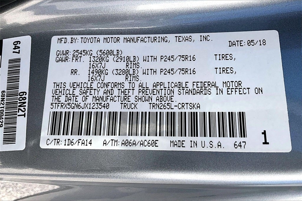- Vehicle Name: Toyota Tacoma