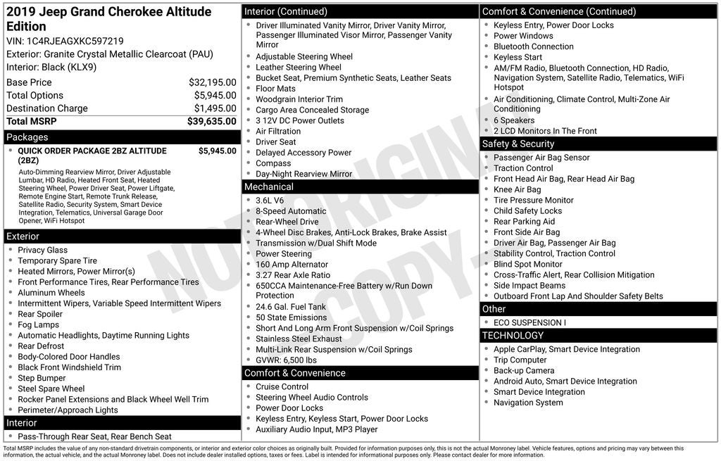 2019 Jeep Grand Cherokee Altitude 4x2