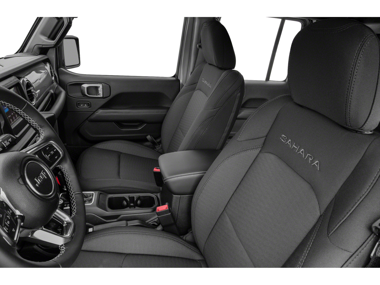Get behind the wheel of our Sahara cabin, and you'll see our Cold Weather Pack adds heated cloth front seats and a heated multifunction steering wheel to dual-zone automatic climate control, power accessories, pushbutton start, and plenty of cargo space. You're treated to a 7-inch touchscreen, a 7-inch driver display, Apple CarPlay/Android Auto, Bluetooth®, and an eight-speaker sound system for your technology needs. Exploring is easy when features like these are on board!