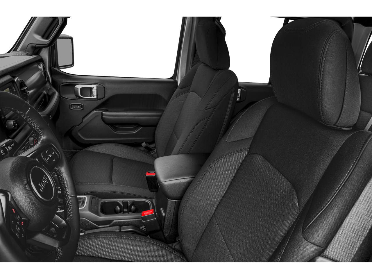 Get comfortable in our Sport S trim's cabin with supportive cloth seats, a leather-wrapped steering wheel, cruise control, air conditioning, push-button start, power accessories, and lockable storage that comes in handy with the roof off. The Uconnect technology adds even more convenience with a 5-inch touchscreen, Voice Command, Bluetooth®, and a powerful eight-speaker audio system. You'll be ready for almost anything with that setup!
