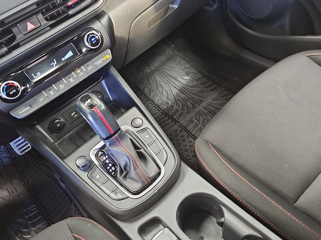 A sporty look carries over to our N Line cabin. That's where you can enjoy heated cloth front seats, a folding second row, a heated leather steering wheel, manual climate control, proximity key entry, pushbutton ignition, and performance-style pedals. Take must-have technology along for the ride with an 8-inch touchscreen, wireless Android Auto/Apple CarPlay, Bluetooth®, and six-speaker audio. Of course, you can take plenty of gear, too, with our Kona's flexible storage space.