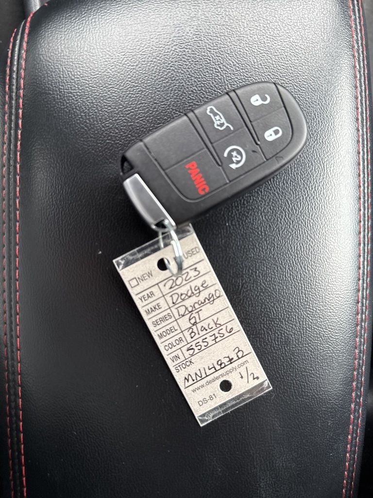 Our 2023 Dodge Durango GT AWD Launch Edition can be fun to drive even with the whole family on board in Diamond Black! Powered by a 3.6 Liter Pentastar V6 offering 293hp tethered to a paddle-shifted 8 Speed Automatic transmission. This All Wheel Drive SUV also checks in with responsive handling and a rear load-leveling suspension, and it achieves nearly 25mpg on the highway. Ready to flex, our Durango has a muscular design with LED lighting, 20-inch alloy wheels, a black sport grille, gloss-black mirror caps, a power liftgate, bright-tipped dual exhaust, and our Launch Edition Pack for a trailer-tow upgrade with a Class IV receiver hitch.
