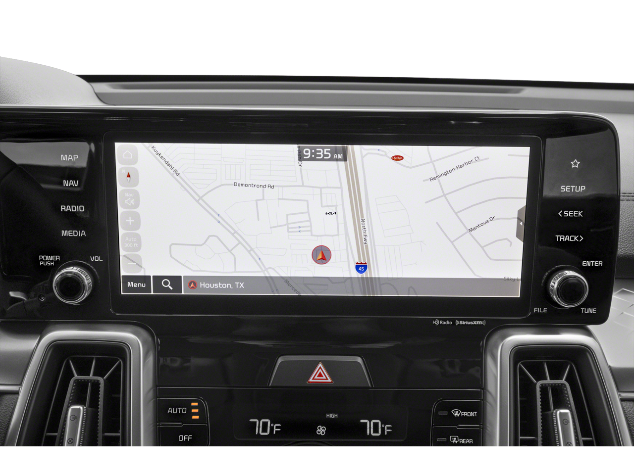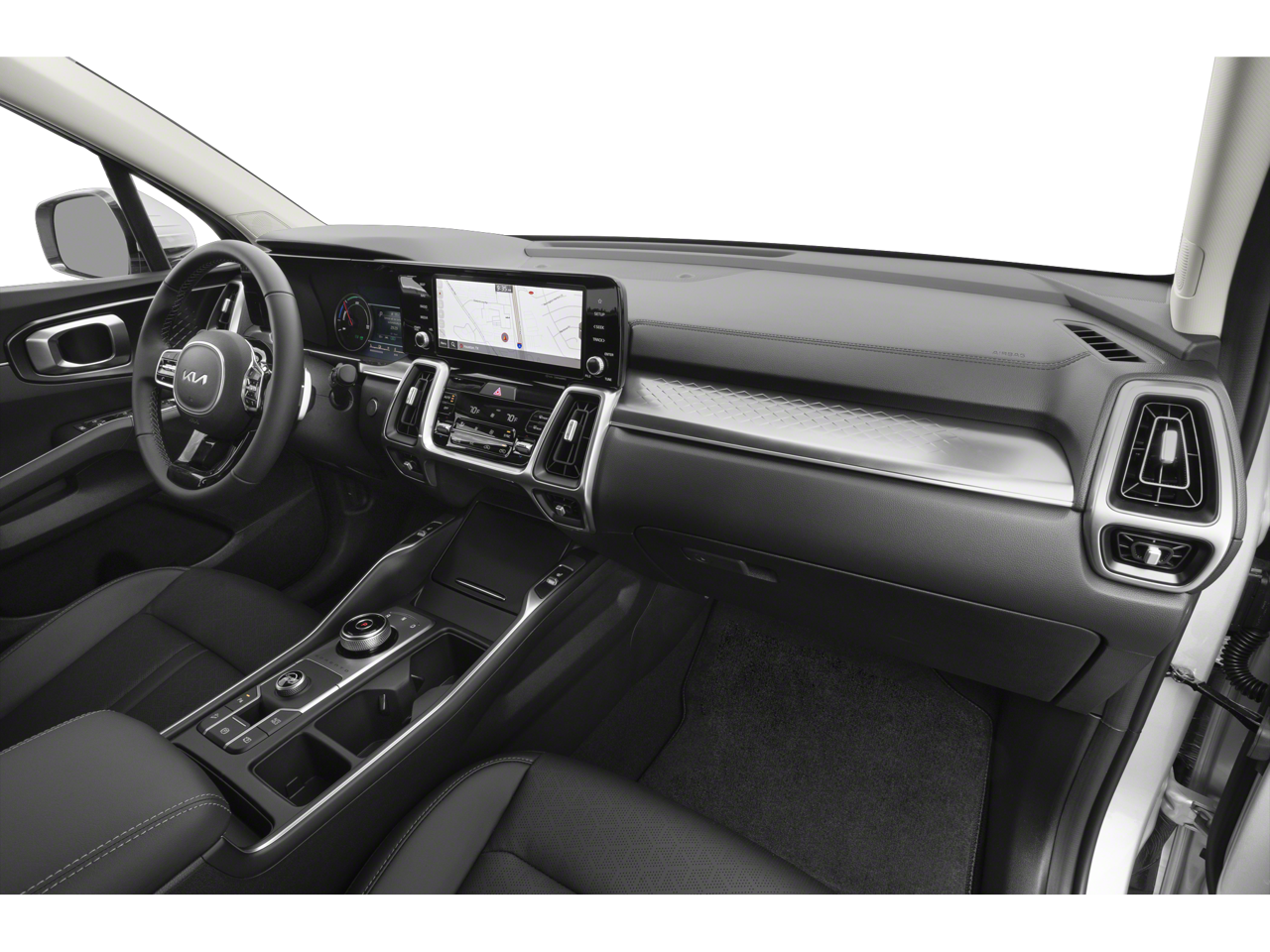 Well-equipped and completely capable, our EX cabin rewards you with heated SynTex power front seats, second-row captain's chairs, a versatile third row, a leather-wrapped steering wheel, dual-zone automatic climate control, keyless access, and pushbutton ignition. Our Sorento puts intelligent infotainment at your fingertips with a 10.25-inch touchscreen, full-color navigation, Apple CarPlay/Android Auto, wireless charging, Bluetooth®, and a six-speaker sound system. The smart setup works with voice recognition, too!