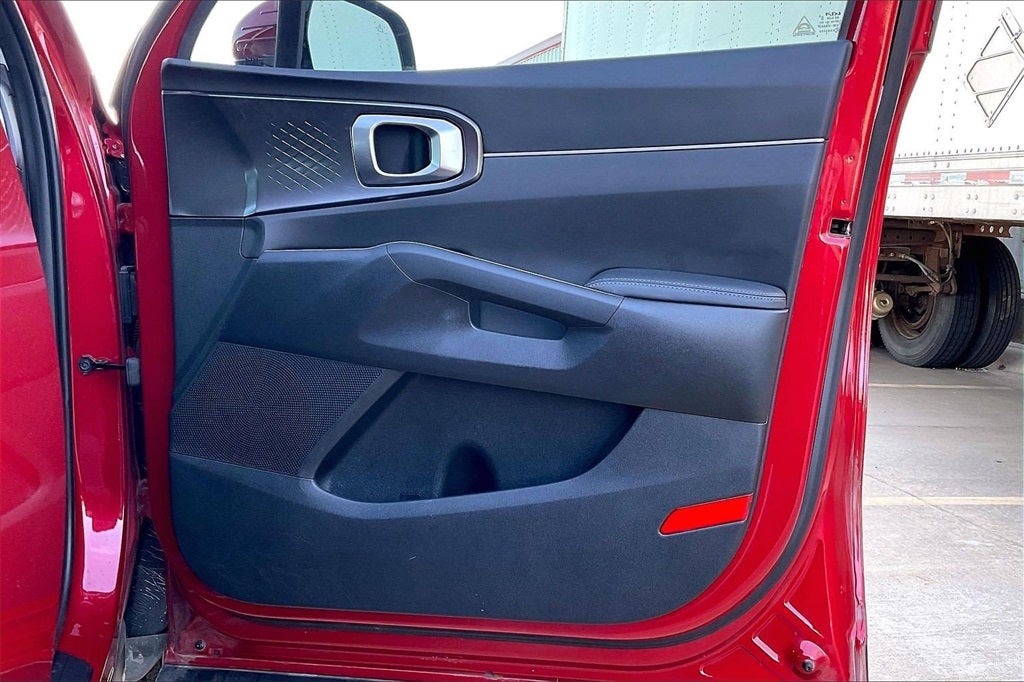 You are going to fall in love with our expressive One Owner 2023 Kia Sorento Hybrid EX AWD, which is here to help your family enjoy its next adventure in Runway Red! Powered by a TurboCharged 1.6 Liter 4 Cylinder and an Electric Motor that offer a combined 227hp tethered to a 6 Speed Automatic transmission for terrific travel. This All Wheel Drive SUV also scores nearly 36mpg in the city with a center-locking differential that helps you move with sure-footed traction. Our bold Sorento shows its style with LED lighting, fog lamps, a hands-free liftgate, roof rails, heated power mirrors, a gloss-black grille, matte-black cladding, and premium alloy wheels.