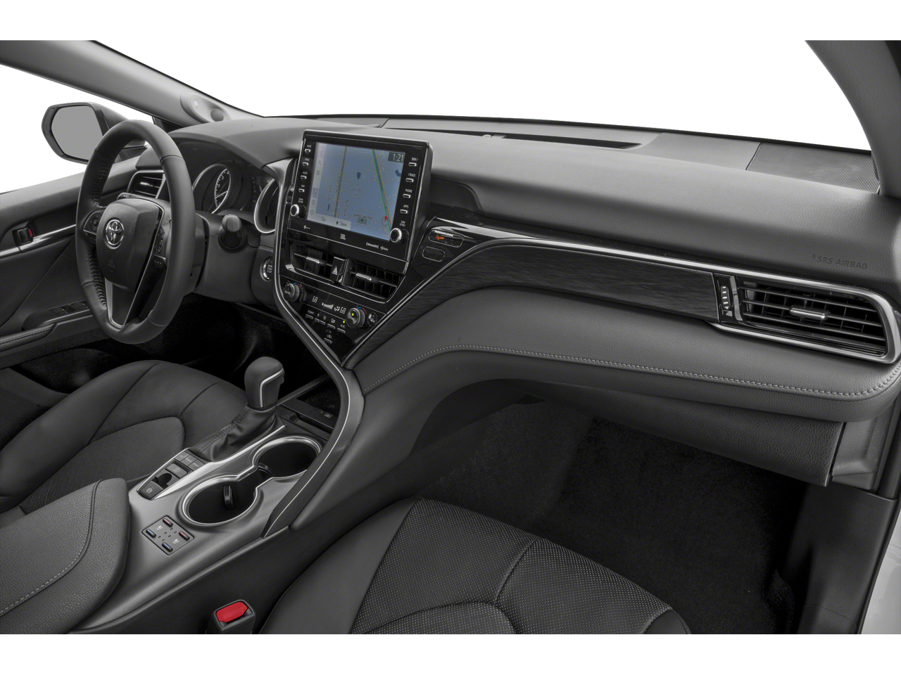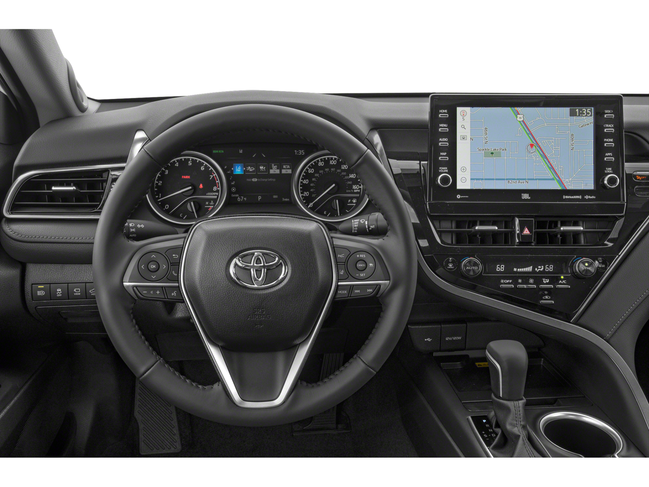Our XLE V6 cabin has a smart layout for comfortable driving with heated leather power front seats, a leather-wrapped steering wheel, dual-zone automatic climate control, keyless access/ignition, and elegant wood inlay trim. You can enjoy remarkable audio with the JBL sound system, and connections are a breeze with a 9-inch touchscreen with Android Auto/Apple CarPlay, Bluetooth®, WiFi/Amazon Alexa compatibility, and wireless charging.