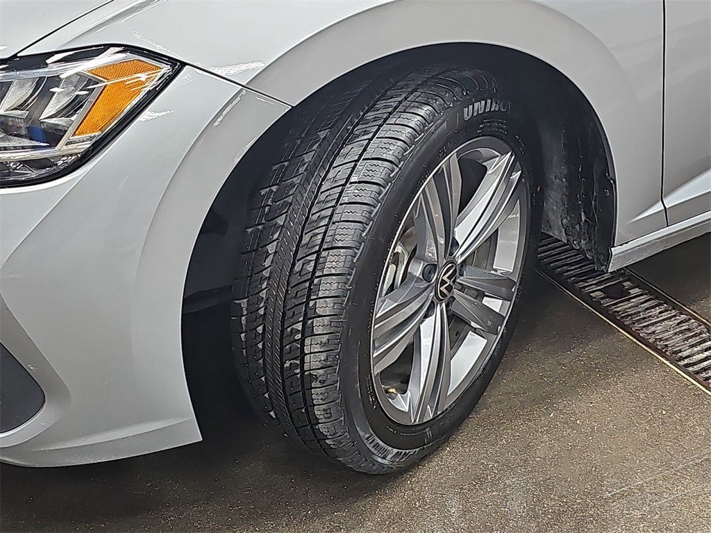 Our uplevel One Owner 2024 Volkswagen Jetta SE Sedan welcomes rewarding comfort and smart safety in Pyrite Silver Metallic! Motivated by a TurboCharged 1.5 Liter TSI 4 Cylinder supplying 158hp to an 8 Speed Automatic transmission for a bold blend of efficiency and energy. A sporty suspension inspires you to look for your favorite backroads in this Front Wheel Drive sedan, which scores nearly 41mpg on the highway. Designed to stand out, our Jetta makes a bold impression with LED lighting, alloy wheels, and heated power mirrors with welcome lighting.